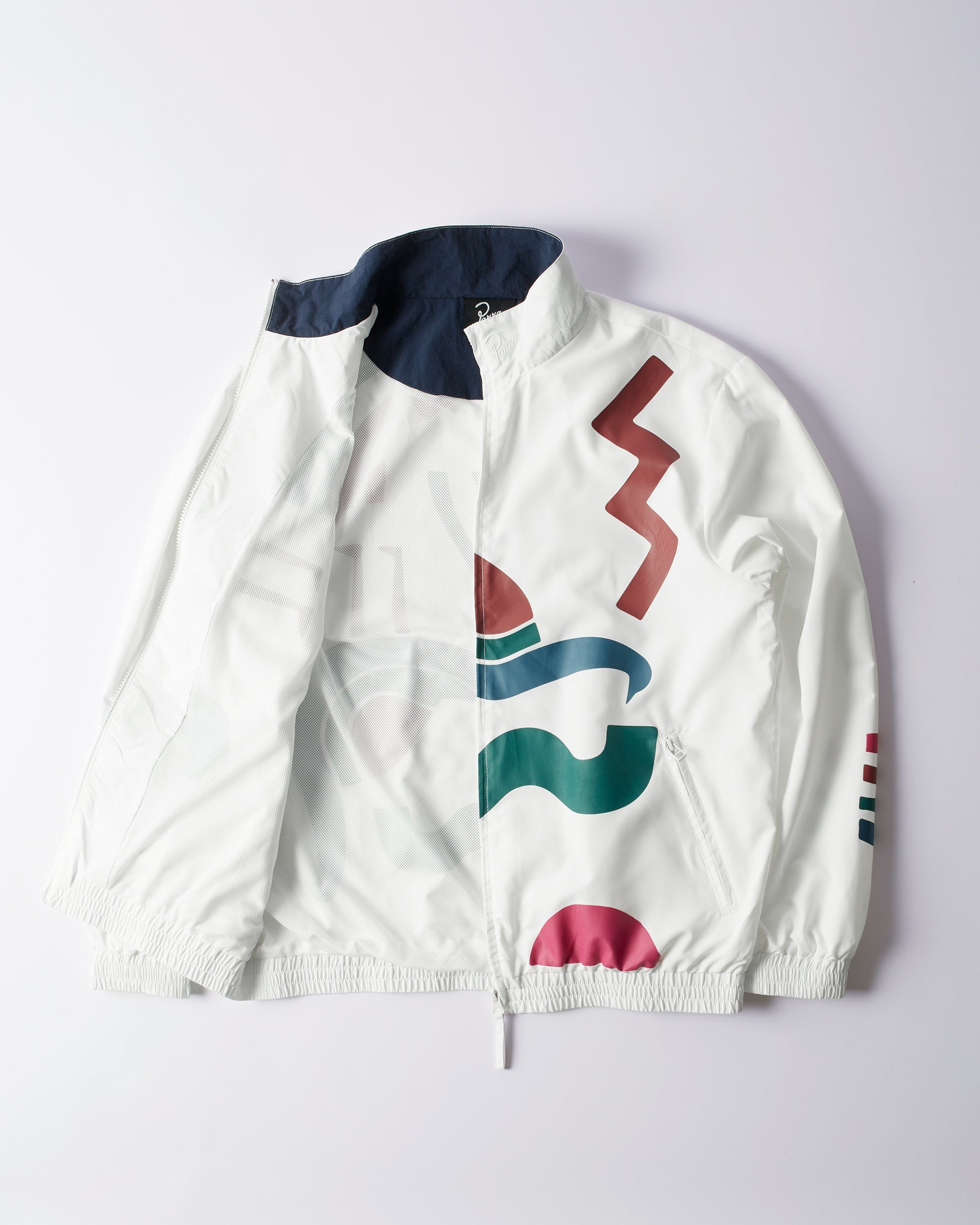Light weighted polyester track jacket with mesh lining. Placement print all over and a classic logo embroidery at collar.